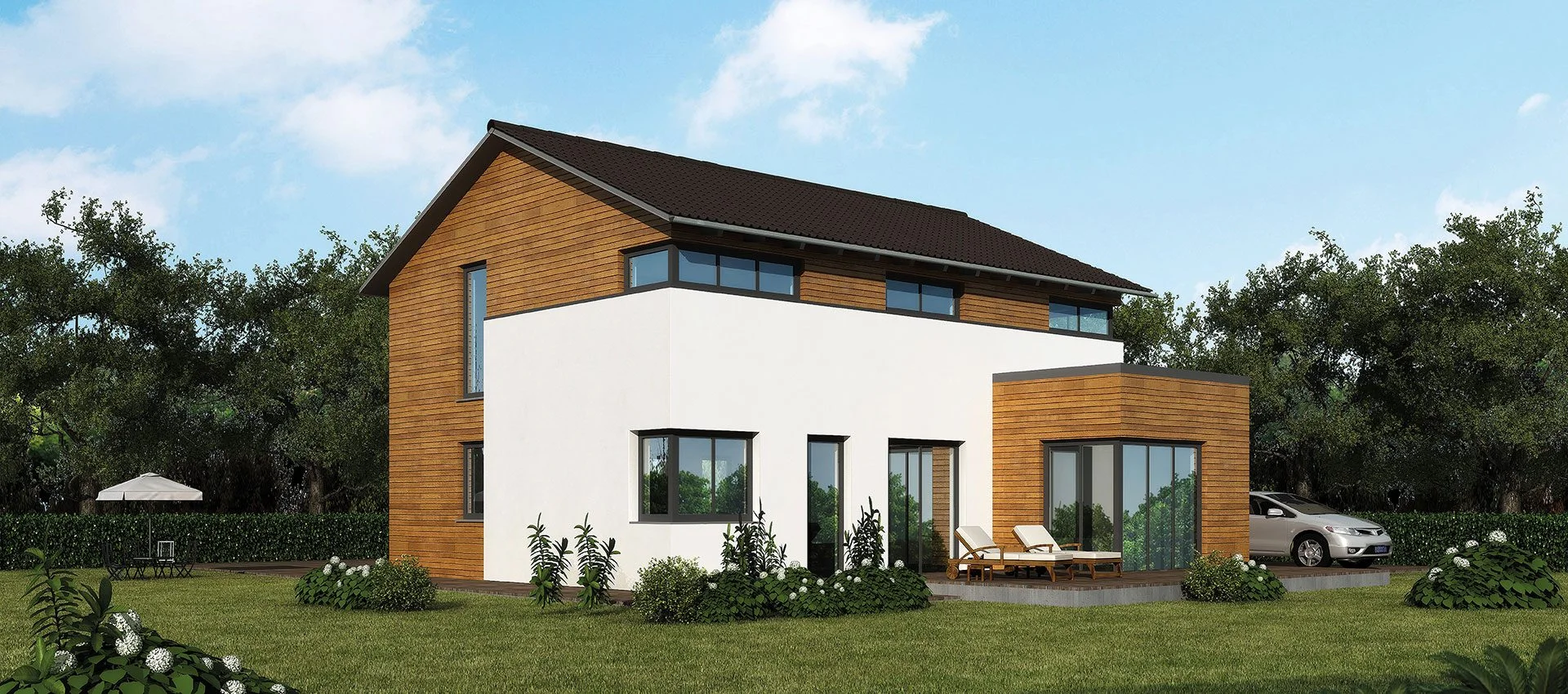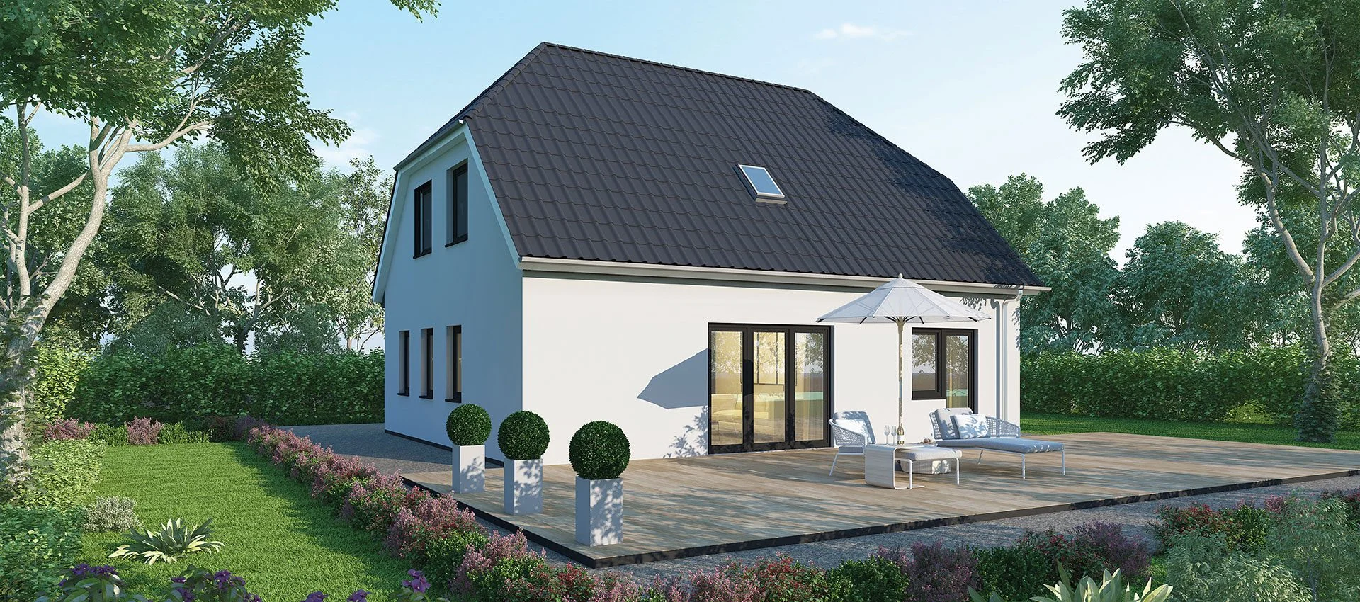 Jeder Haustyp ist ein Ausgangspunkt — Größe, Grundriss, Architektur und Ausstattung gestalten wir gemeinsam mit Ihnen.
