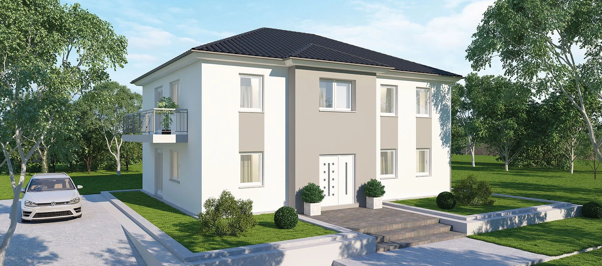 Zwei Wohneinheiten unter einem Dach — das Zweifamilienhaus bietet Raum für zwei Generationen oder zusätzliche Mieteinnahmen, massiv gebaut und energieeffizient.
