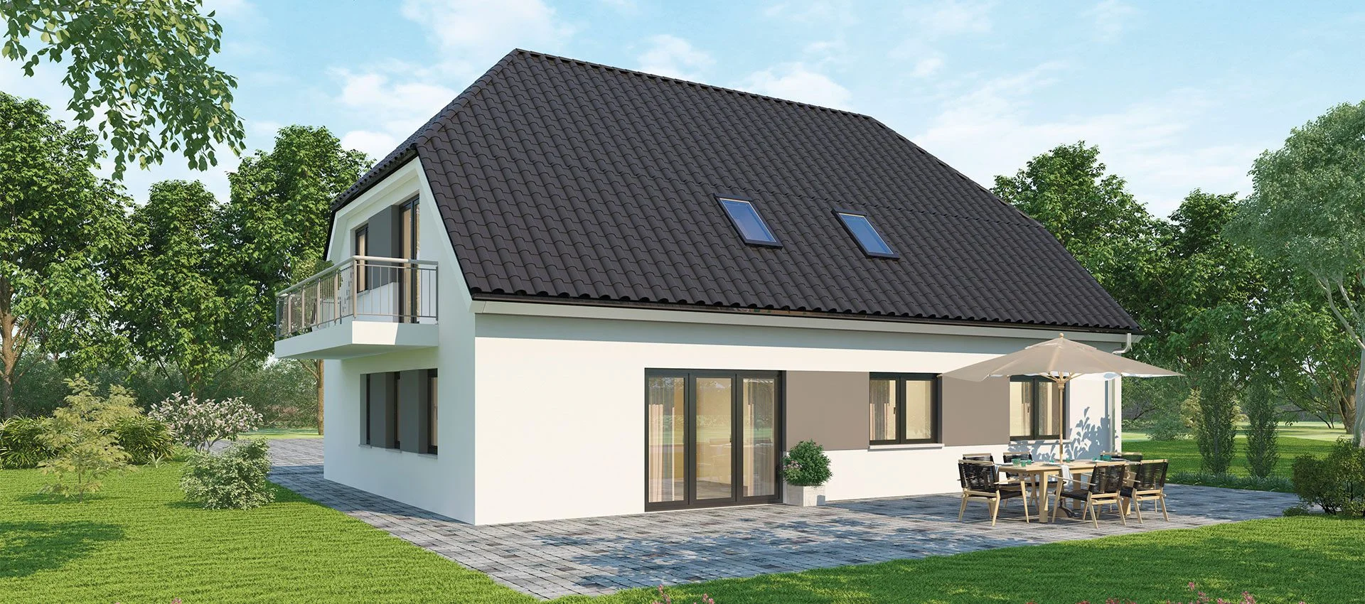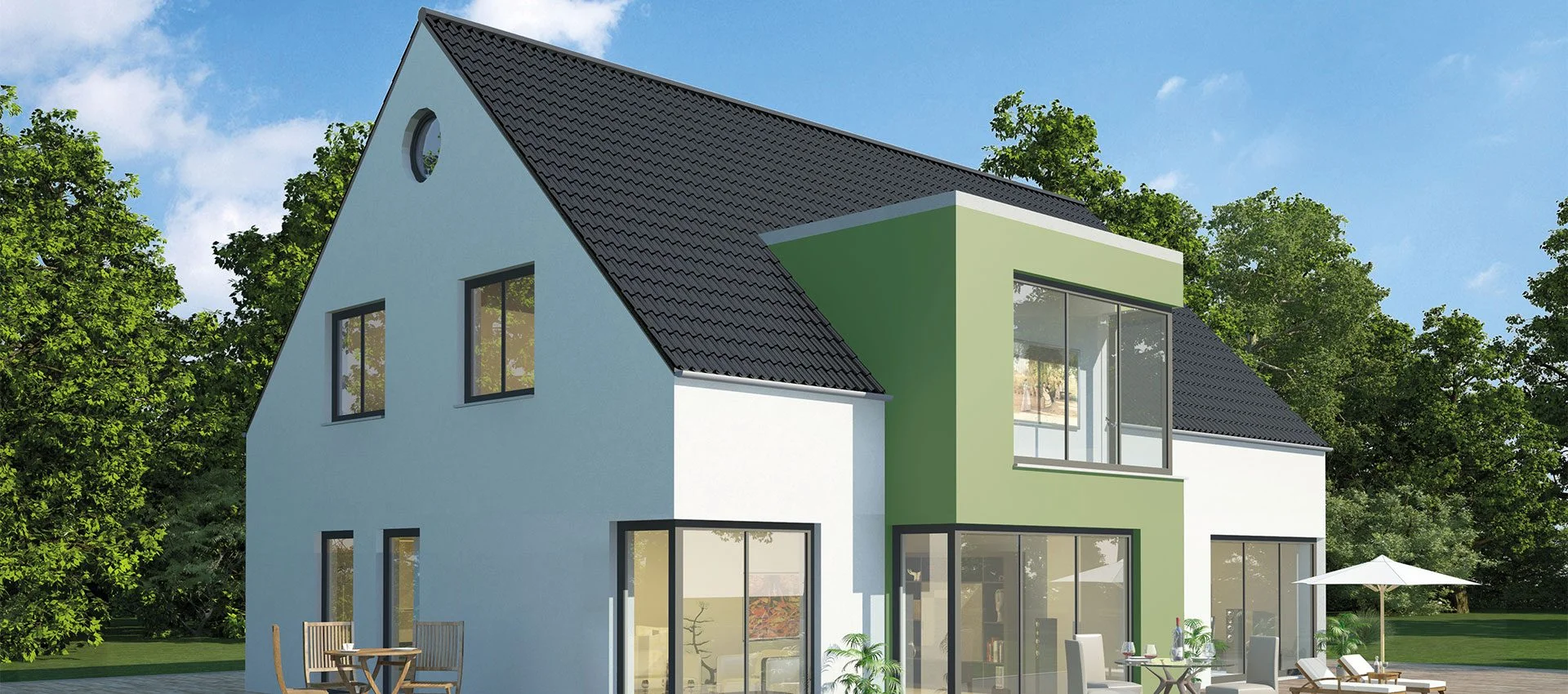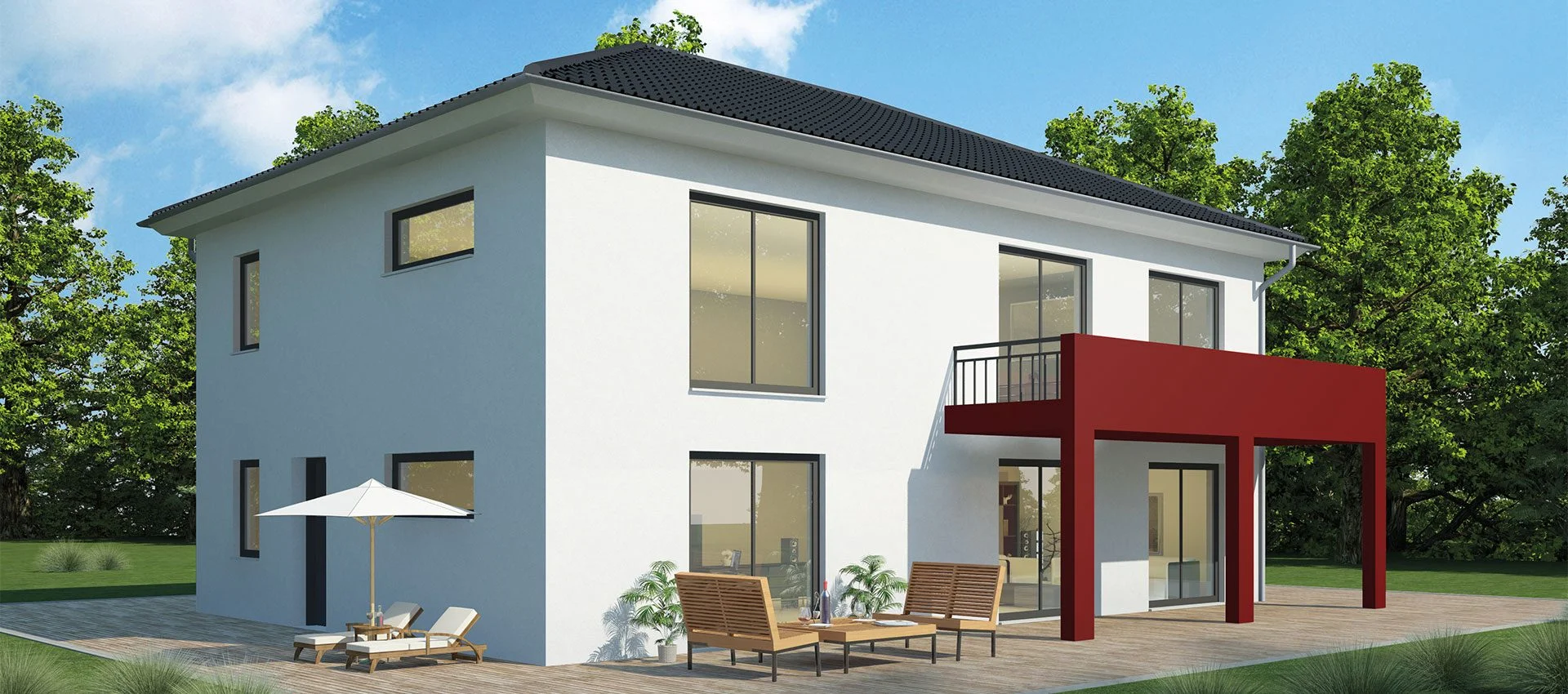 Jeder Haustyp ist ein Ausgangspunkt — Größe, Grundriss, Architektur und Ausstattung gestalten wir gemeinsam mit Ihnen.